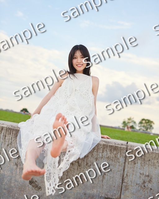 今回公開されたのは、白の透け感のある衣装をまとい、マリーナ・バラッジで夕日を待っているカット。裸足のまま足を上げてはしゃぐ姿にキュンとして思わず笑顔になってしまう1枚となっている。